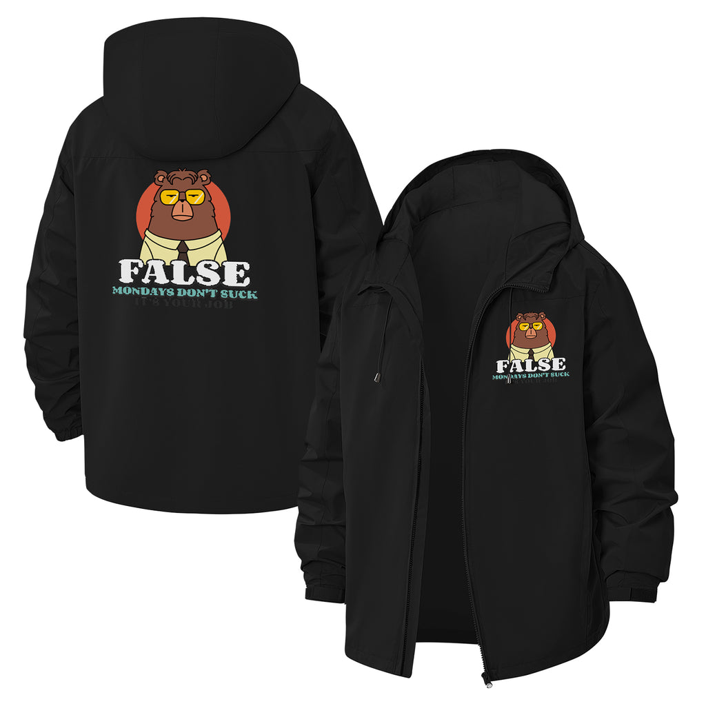 Funny Bear Mondays Unisex Full-Zip Printed Waterproof Hooded Windbreaker