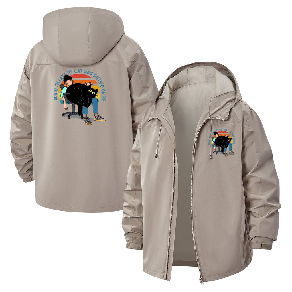 Funny Cat Attitude Unisex Full-Zip Printed Waterproof Hooded Windbreaker