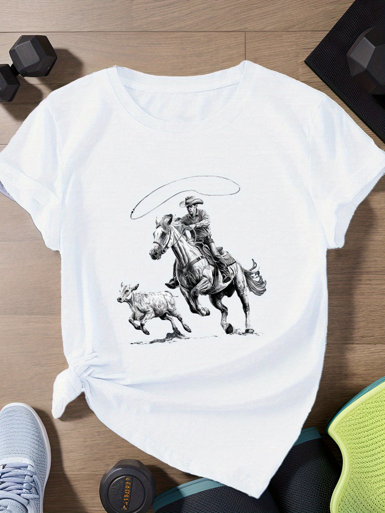 Funny Shirts For Women Cowboy Riding Horse With Two Running Dogs Wild West Scene, Womens Night Shirts, Funny T Shirts For Women