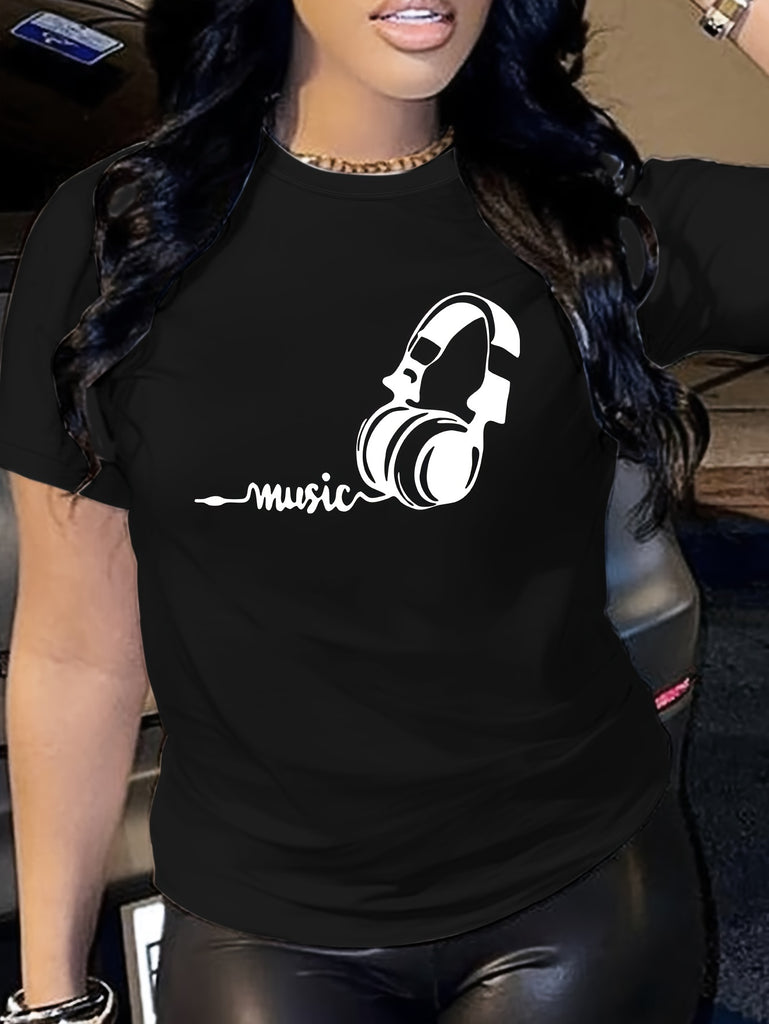 Funny Shirts For Women Music Simple Monochrome Headphones With Clean Design Tshirt, Green Shirt Womens, Womens Graphic Tees Vintage