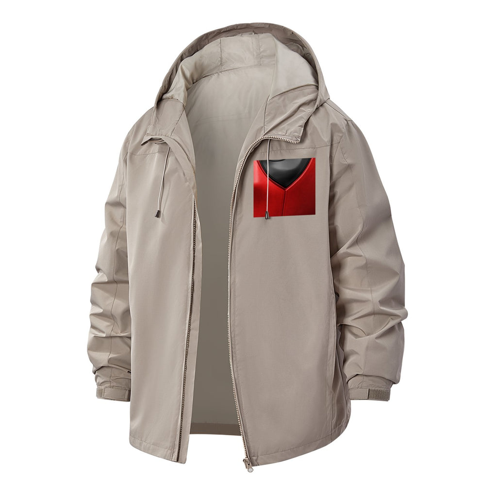 Futuristic Chest Armor Unisex Full-Zip Printed Waterproof Hooded Windbreaker