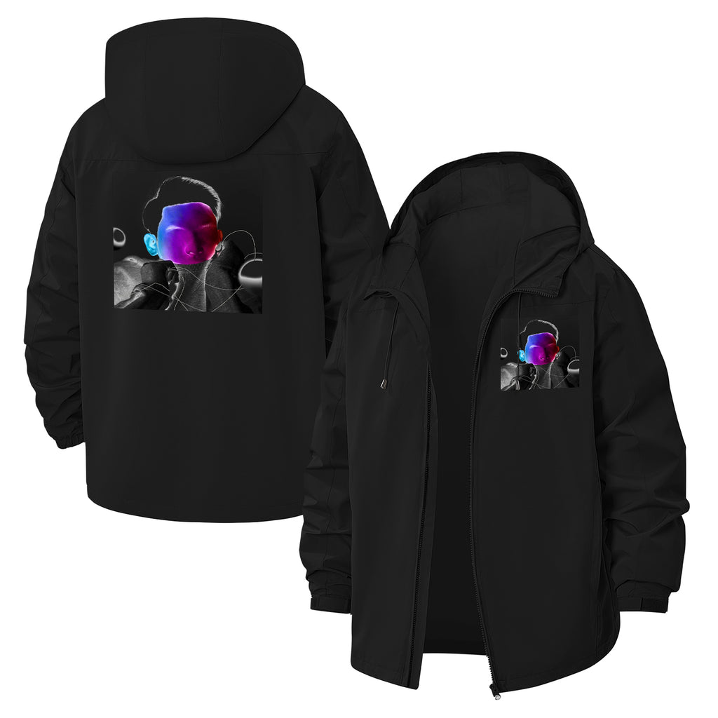 Futuristic Portrait Unisex Full-Zip Printed Waterproof Hooded Windbreaker