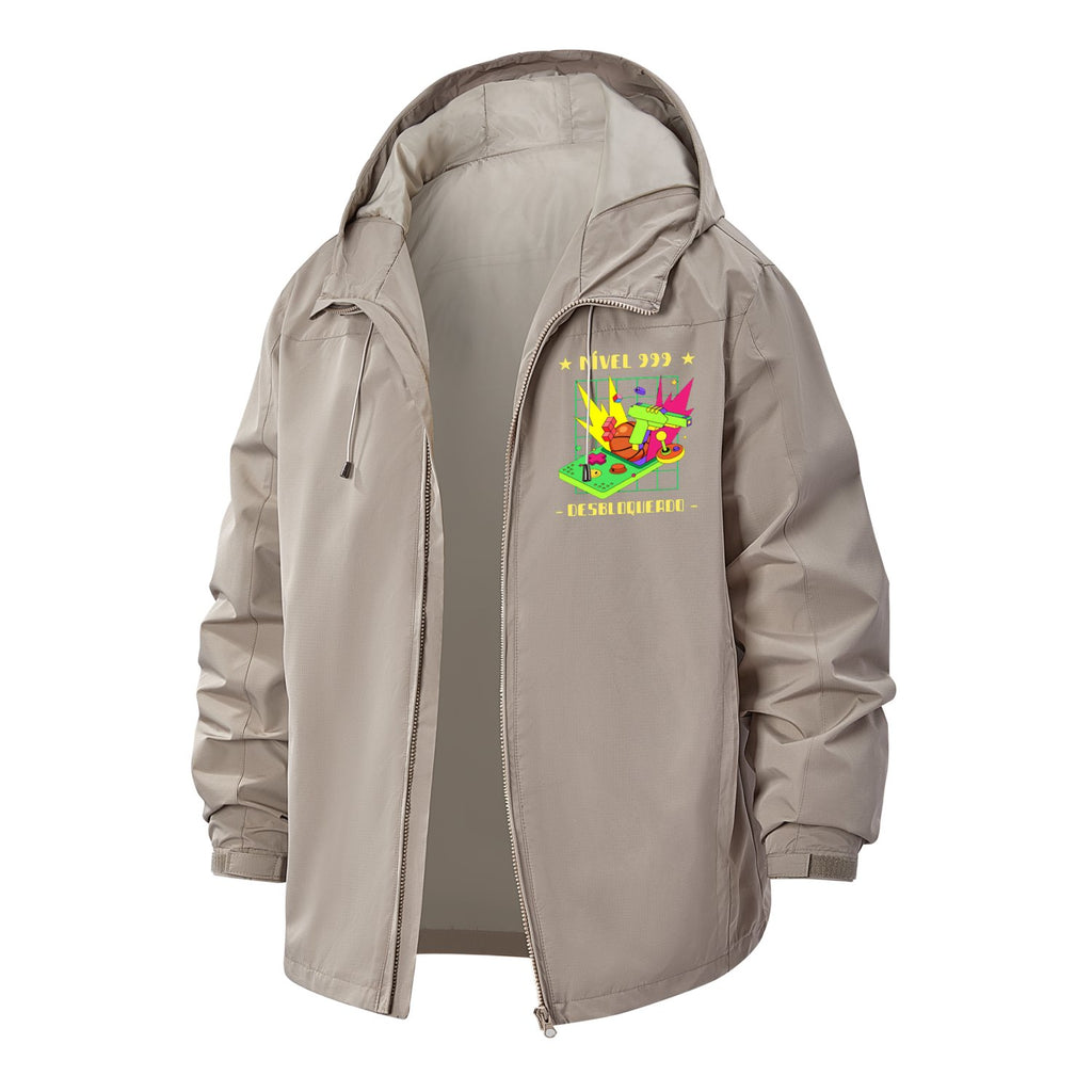 Gamer Level Unlocked Unisex Full-Zip Printed Waterproof Hooded Windbreaker