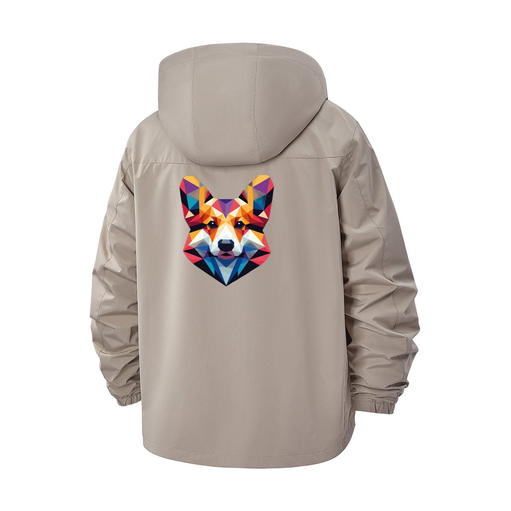 Geometric Fox Unisex Full-Zip Printed Waterproof Hooded Windbreaker