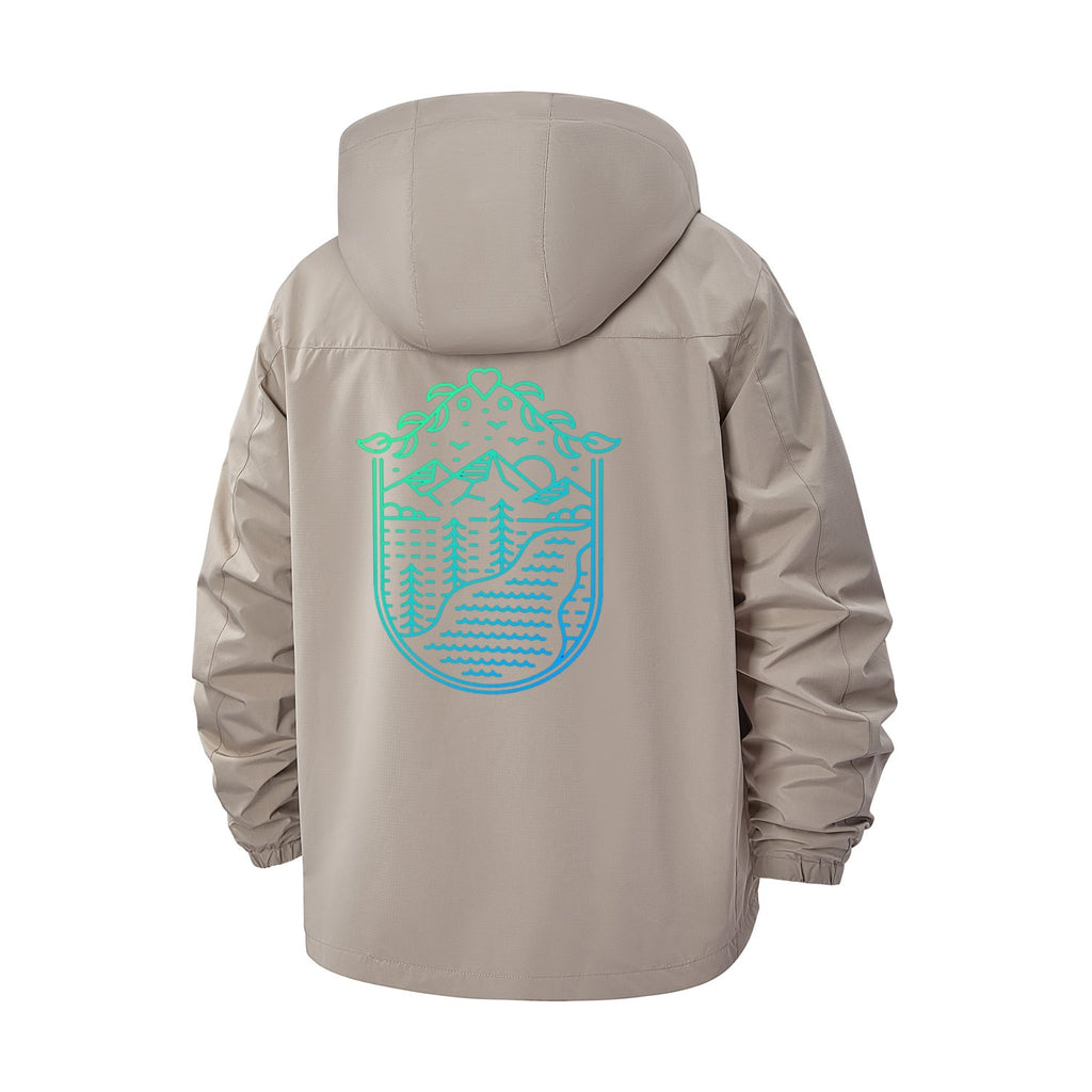 Geometric Mountain Landscape Unisex Full-Zip Printed Waterproof Hooded Windbreaker
