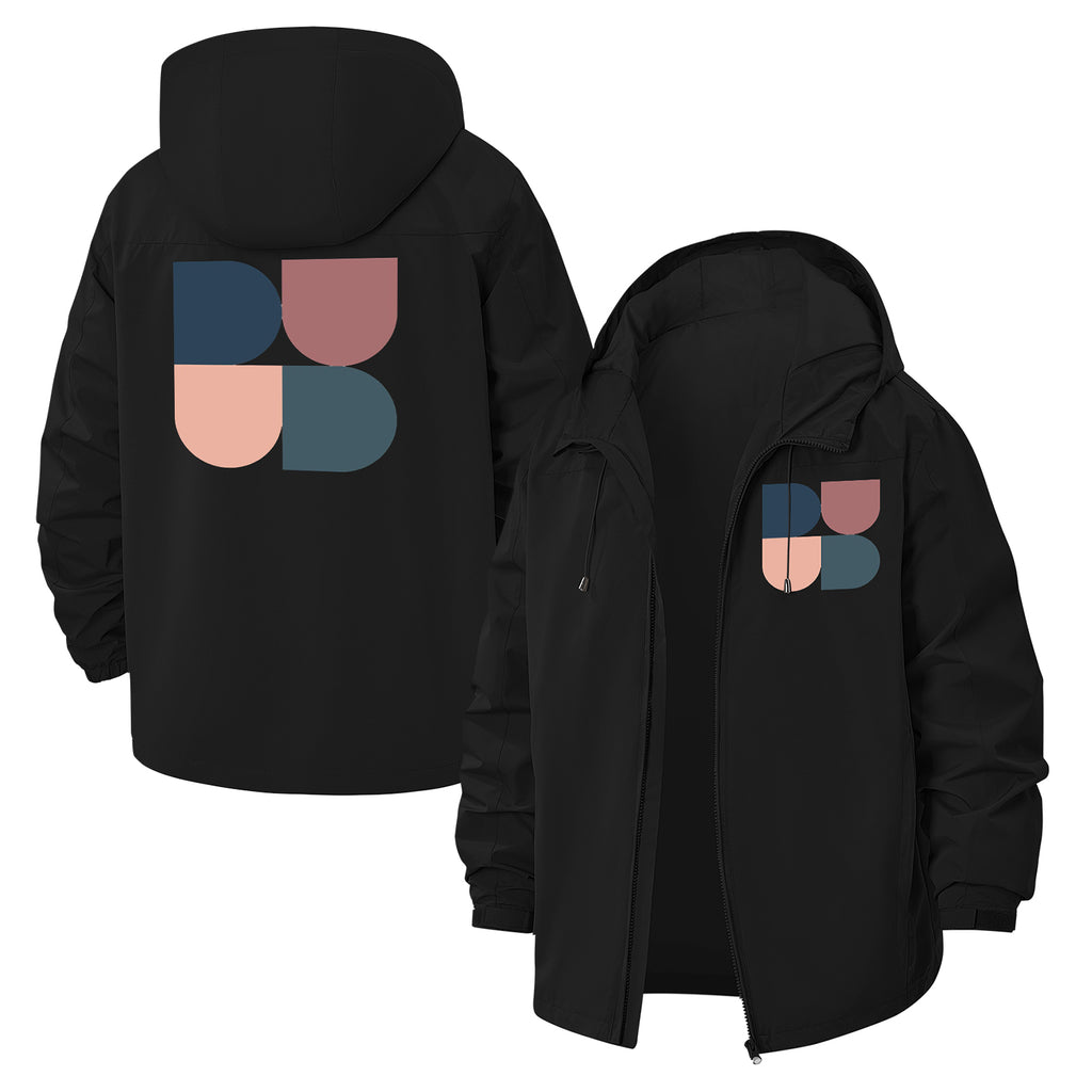 Geometric Shapes Unisex Full-Zip Printed Waterproof Hooded Windbreaker