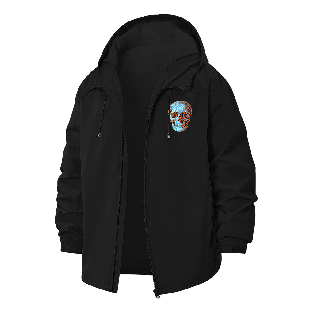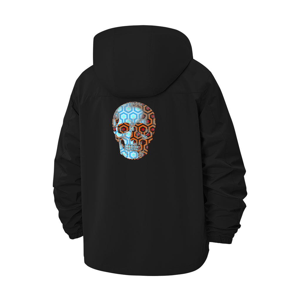 Geometric Skull Unisex Full-Zip Printed Waterproof Hooded Windbreaker