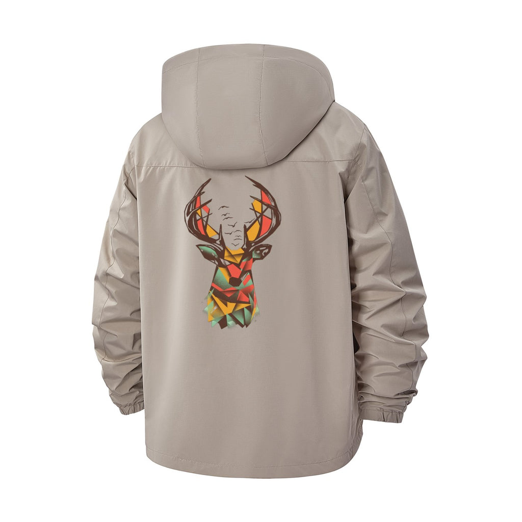 Geometric Stag Unisex Full-Zip Printed Waterproof Hooded Windbreaker