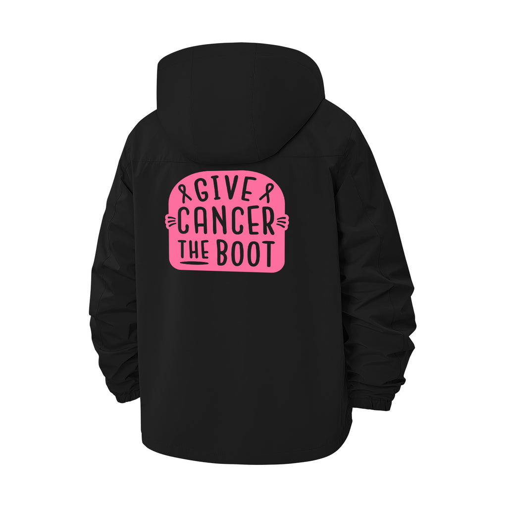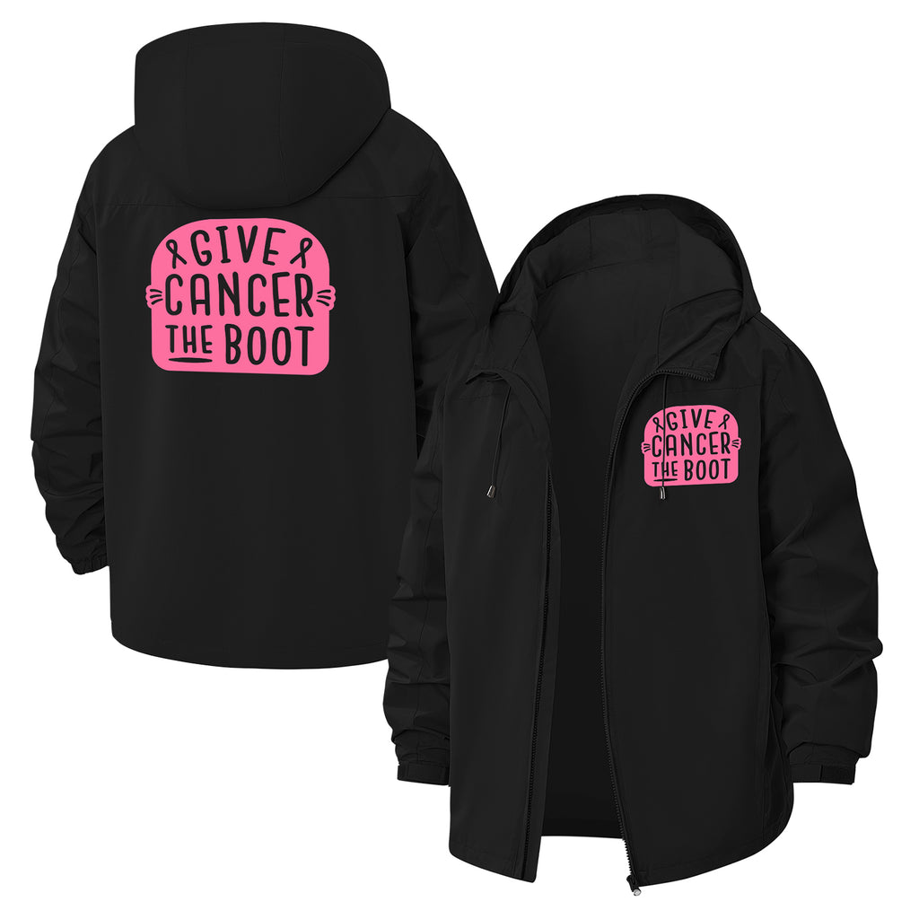 Give Cancer the Boot Unisex Full-Zip Printed Waterproof Hooded Windbreaker
