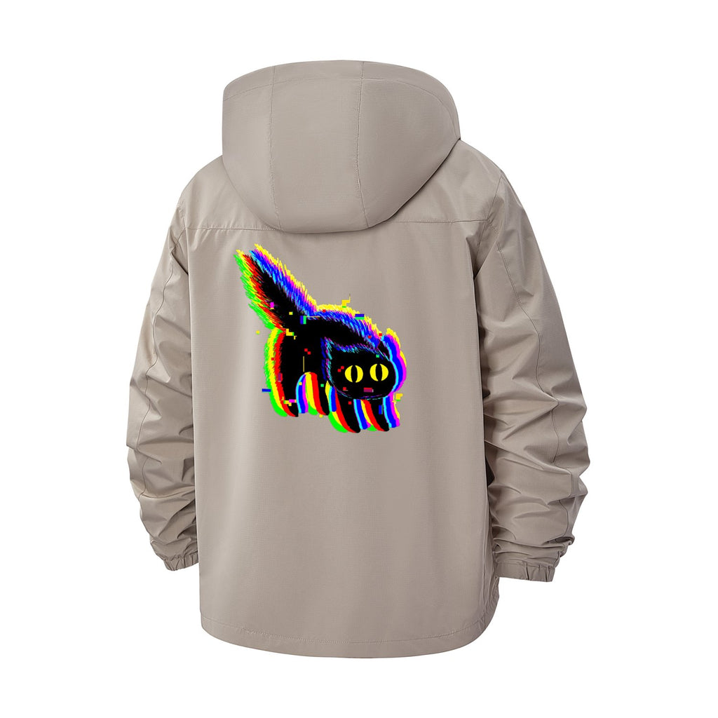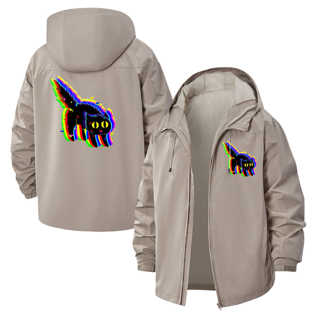 Glitch Cat Unisex Full-Zip Printed Waterproof Hooded Windbreaker