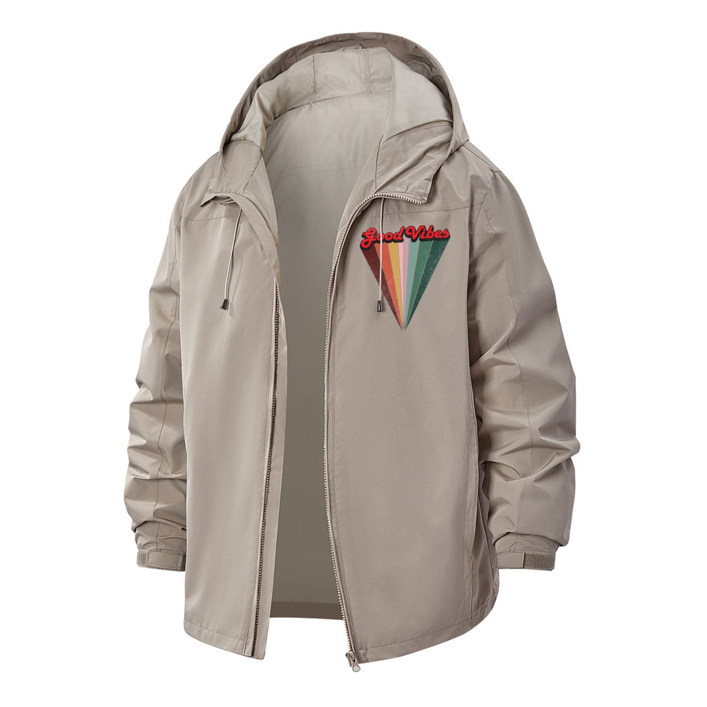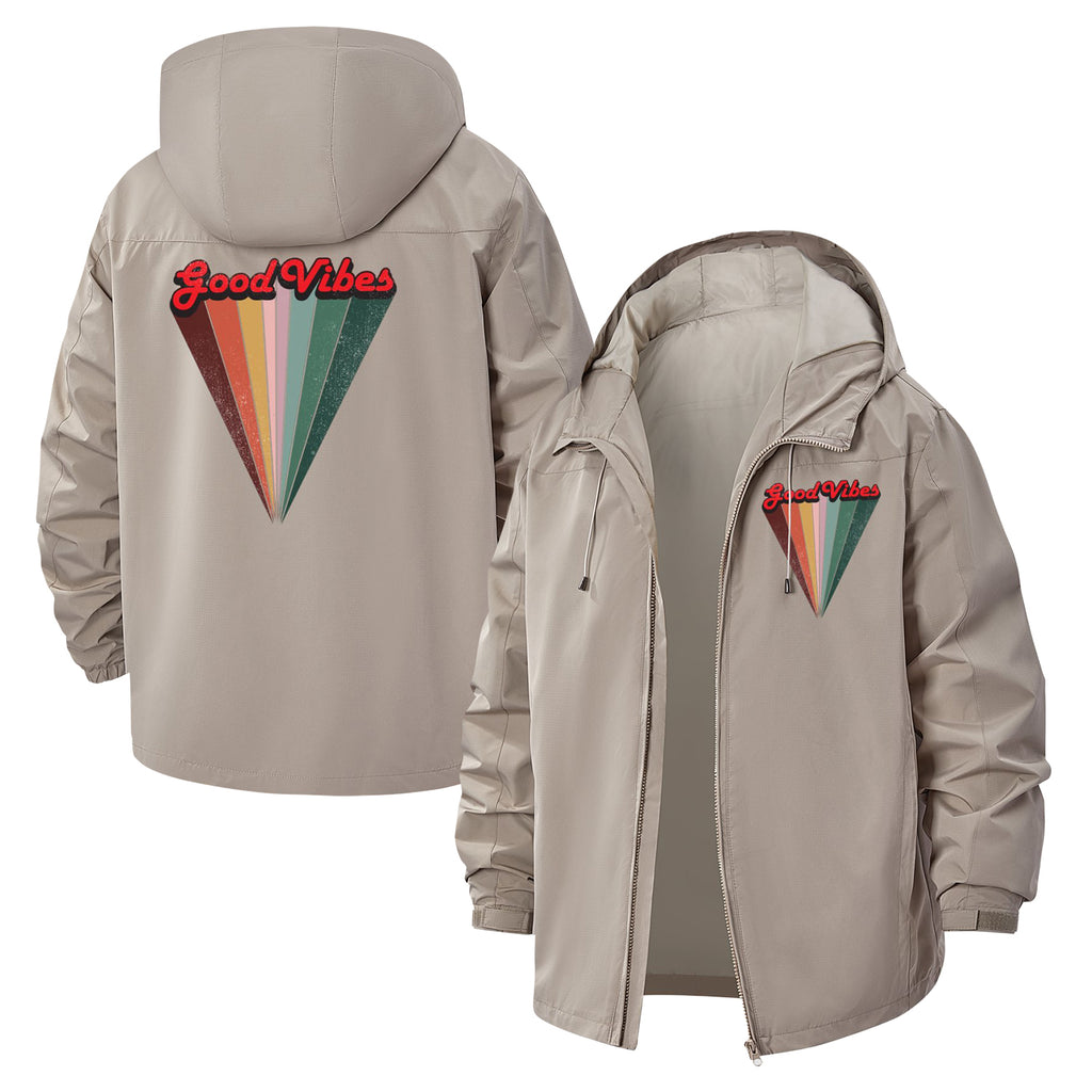 Good Vibes Retro Graphic Unisex Full-Zip Printed Waterproof Hooded Windbreaker