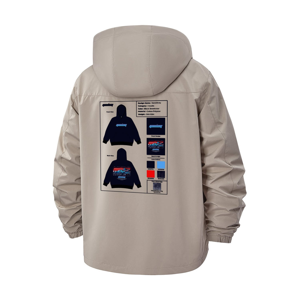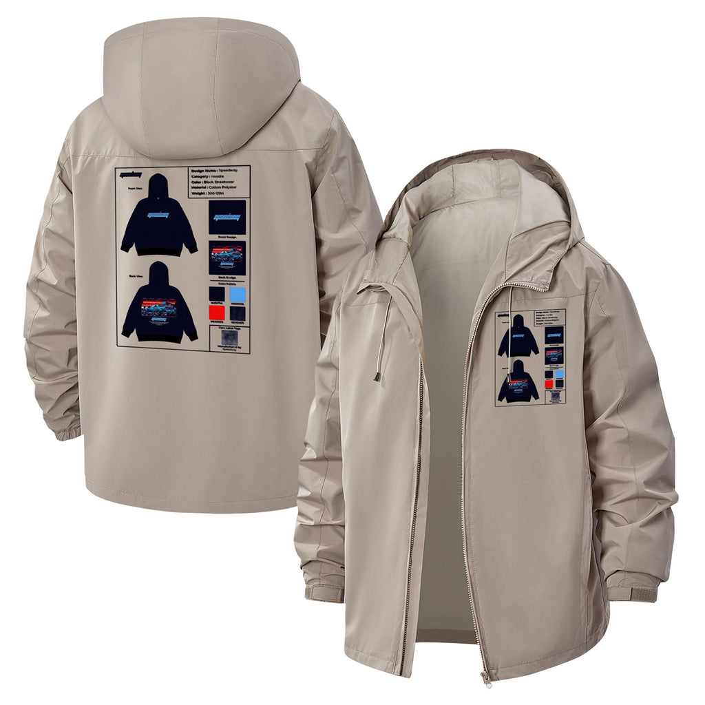 Graphic Hoodie Blueprint Unisex Full-Zip Printed Waterproof Hooded Windbreaker