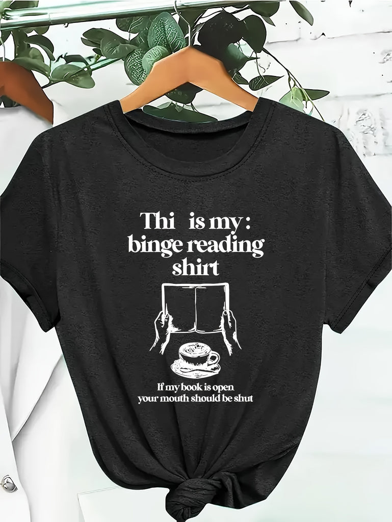 Graphic Shirts For Women Binge Reading Shirt Soft Cotton With Relaxed Fit Black Tshirt, Cute T Shirts For Women, Womens White Tee