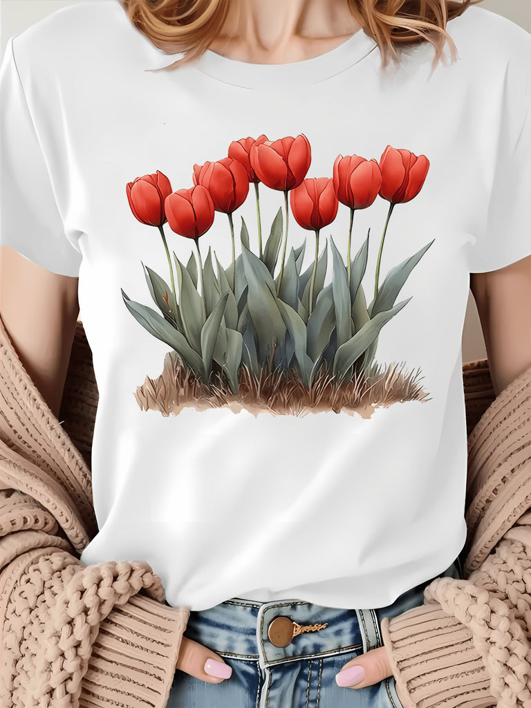 Graphic Tshirts Women Red Blooming Tulips With Green Leaves Growing On Earth Tulip, Cute T Shirts For Women, Vintage T Shirts Women