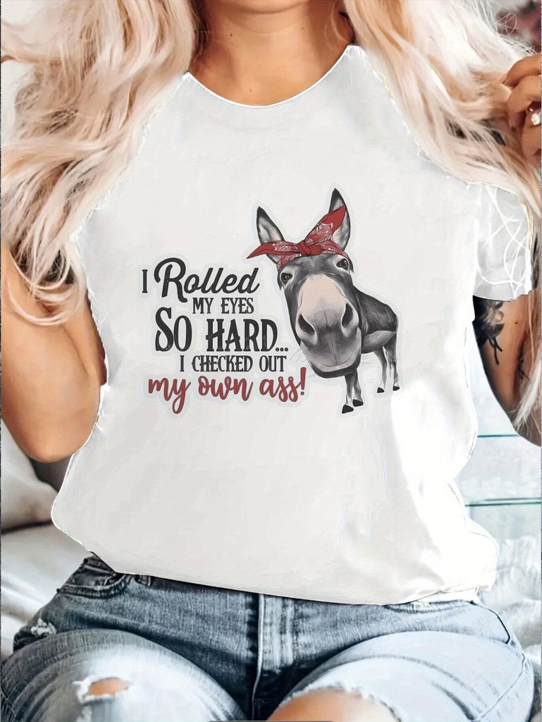 Green Shirt Womens I Rolled My Eyes So Hard Cheered On My Own Ass Donkey, Womens White Tee, Cute T Shirts For Women