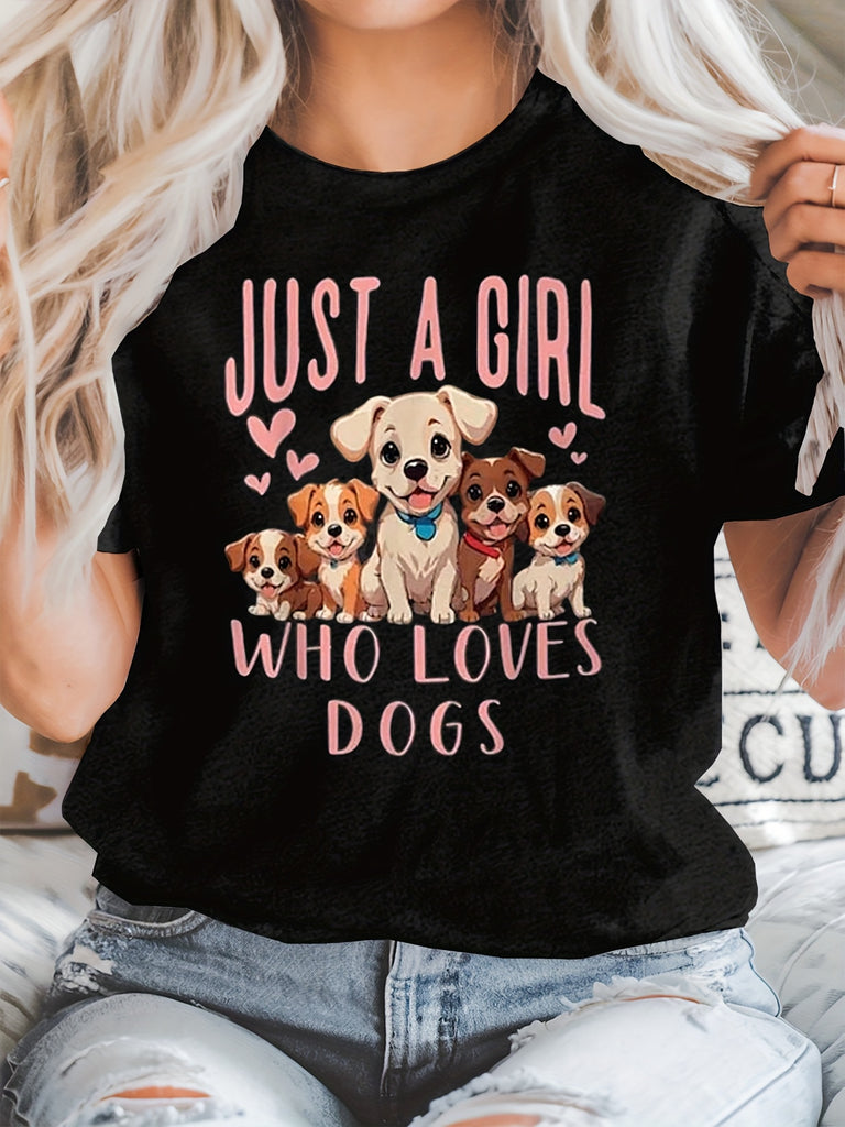 Green Shirt Womens Just A Girl Who Loves Dogs Cute Puppies With Hearts And Loving Expressions Dog, Womens Grinch Shirt, Womens Graphic Tshirts