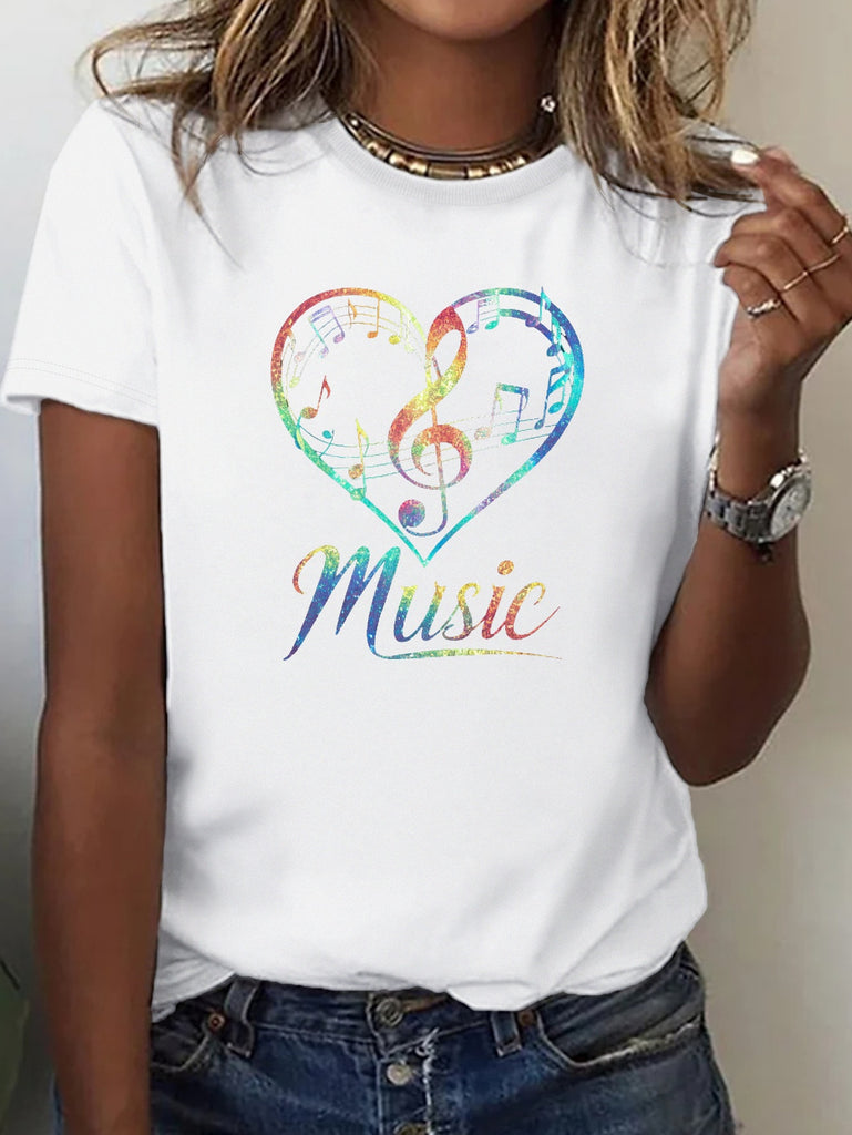 Green Shirt Womens Music Colorful Notes Heart Shape T Shirt, 100 Cotton T Shirts For Women, Women's Short Sleeve T Shirts