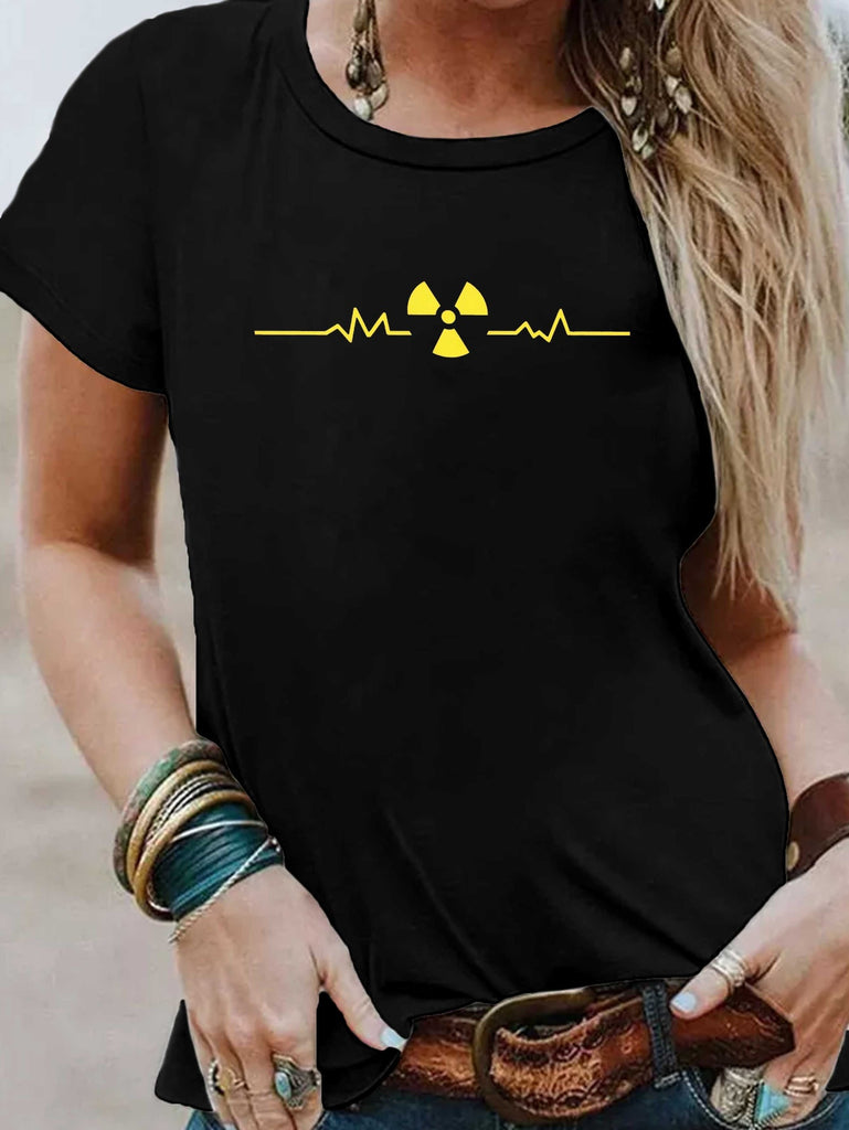 Green Shirt Womens Yellow Radiation Symbol With Heartbeat Line On Solid Black T Shirt, Cotton T Shirts For Women, Red T Shirt Women
