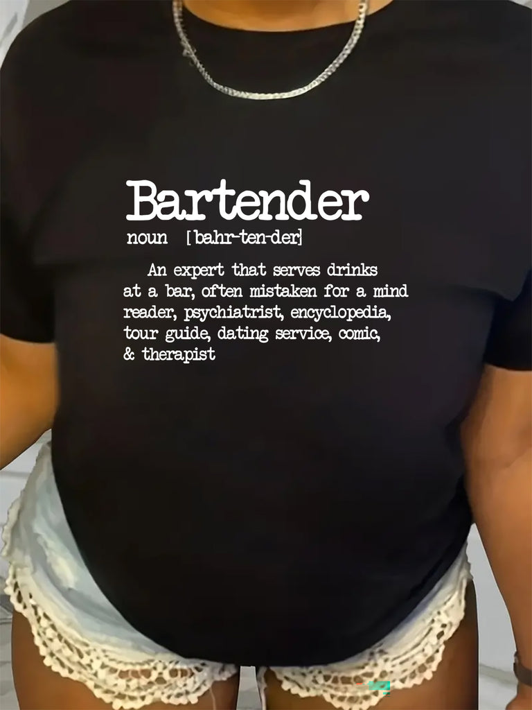 Grey T Shirt Womens Bartender Definition Text On Soft Comfortable Black Tshirt, Women Tshirts, Womens Graphic Tees Vintage