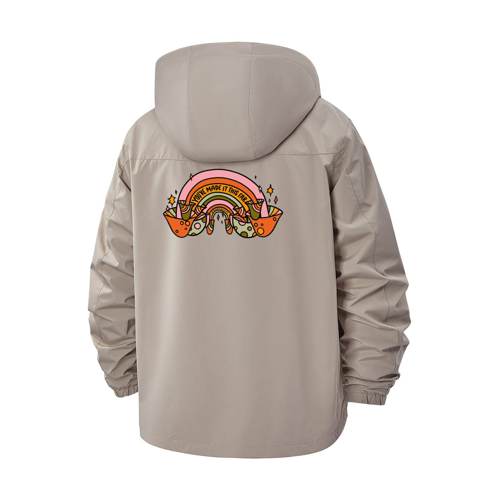 Groovy Rainbow Unisex Full-Zip Printed Waterproof Hooded Windbreaker