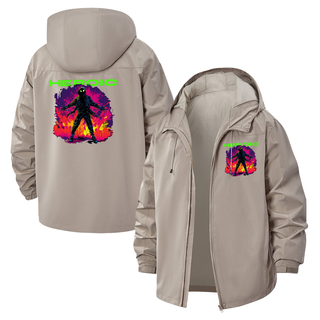 Heroic Silhouette Unisex Full-Zip Printed Waterproof Hooded Windbreaker