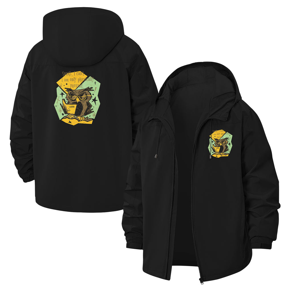 Hipster Owl Unisex Full-Zip Printed Waterproof Hooded Windbreaker