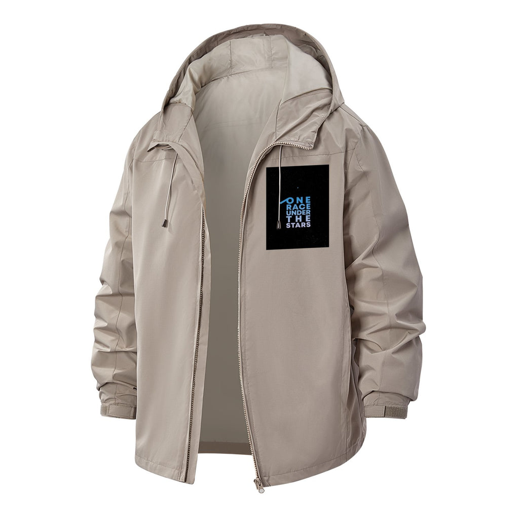 Inspirational Slogan Unisex Full-Zip Printed Waterproof Hooded Windbreaker