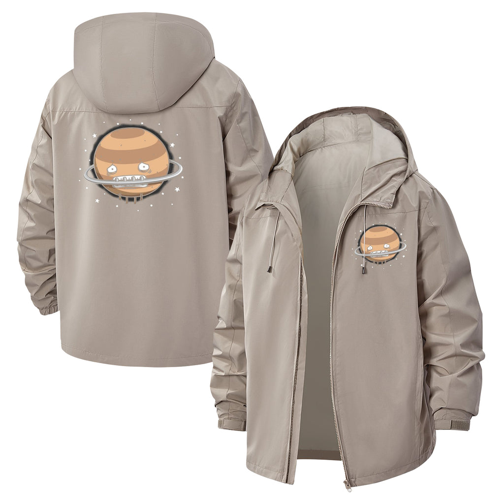 Kawaii Planet Unisex Full-Zip Printed Waterproof Hooded Windbreaker