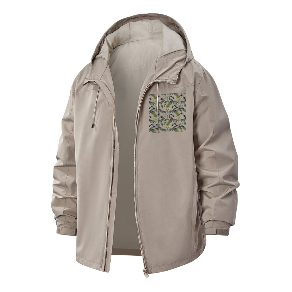 Leaf Pattern Unisex Full-Zip Printed Waterproof Hooded Windbreaker