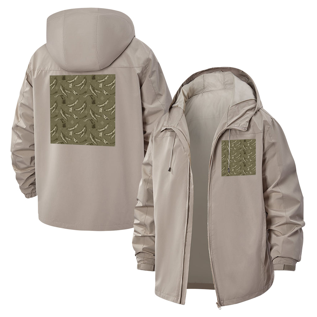 Leaf Pattern Unisex Full-Zip Printed Waterproof Hooded Windbreaker