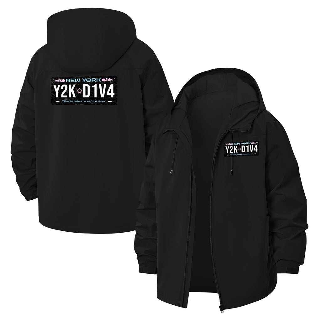 License Plate Motif Unisex Full-Zip Printed Waterproof Hooded Windbreaker