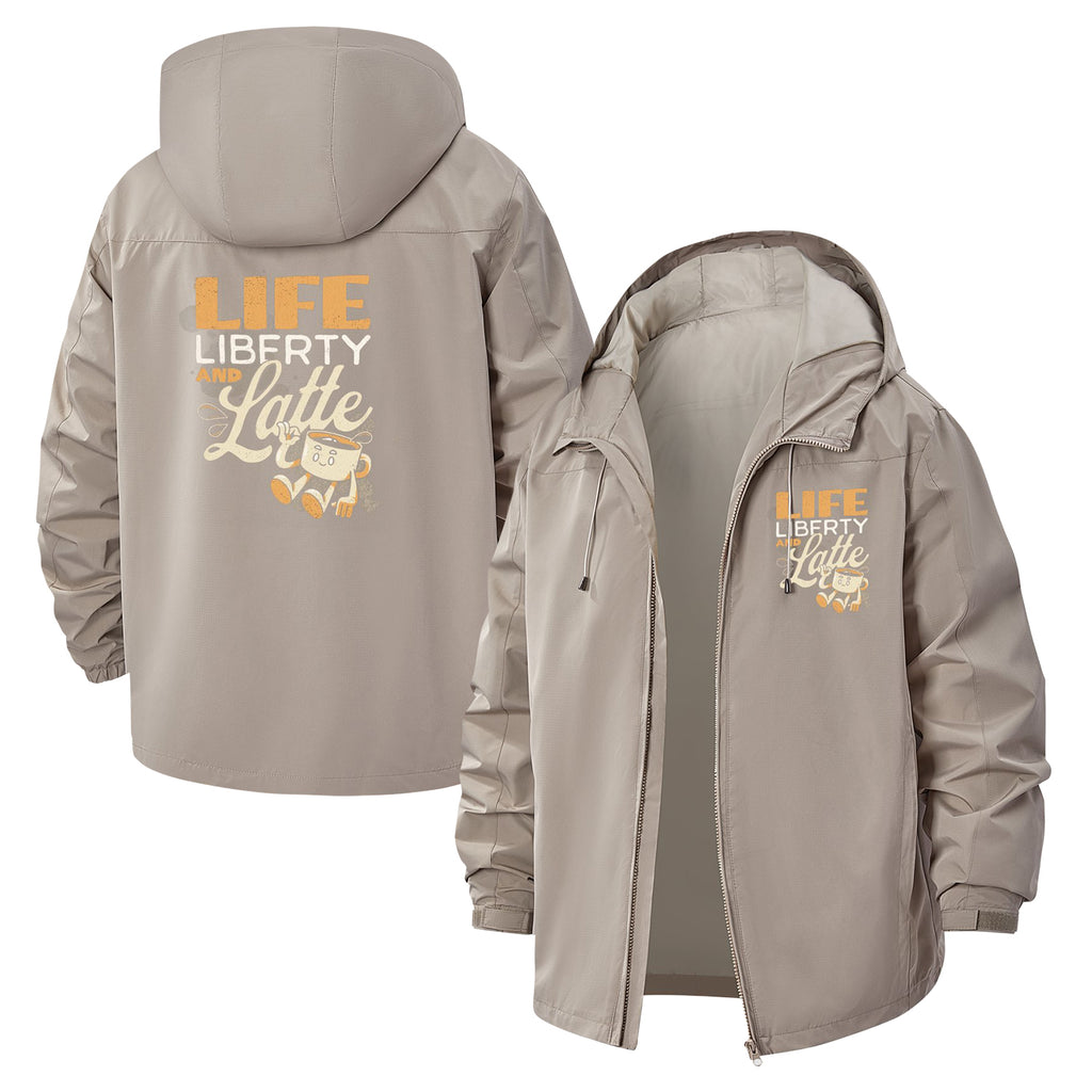 Life Liberty and Latte Unisex Full-Zip Printed Waterproof Hooded Windbreaker