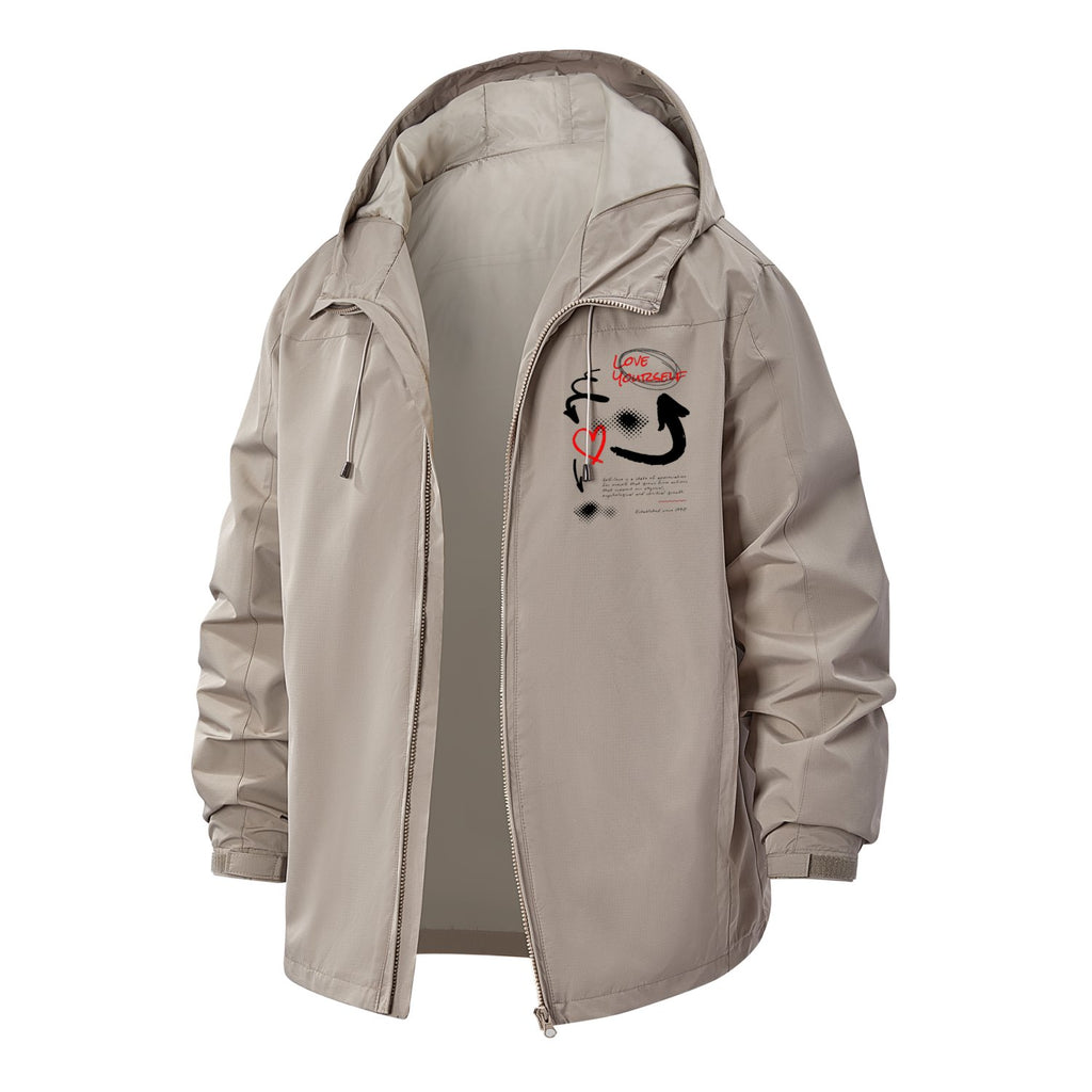 Love Yourself Heart Unisex Full-Zip Printed Waterproof Hooded Windbreaker