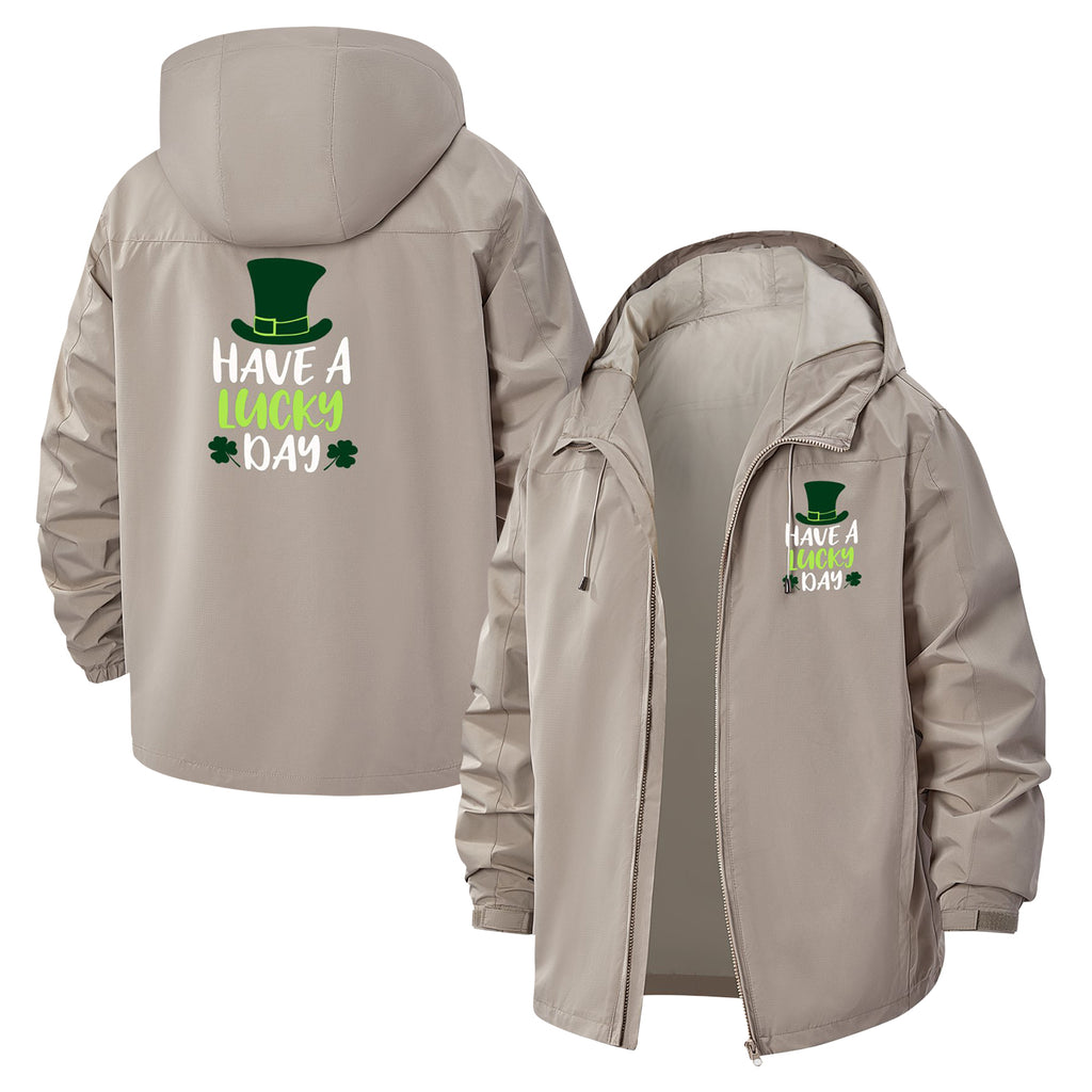 Lucky Day Unisex Full-Zip Printed Waterproof Hooded Windbreaker