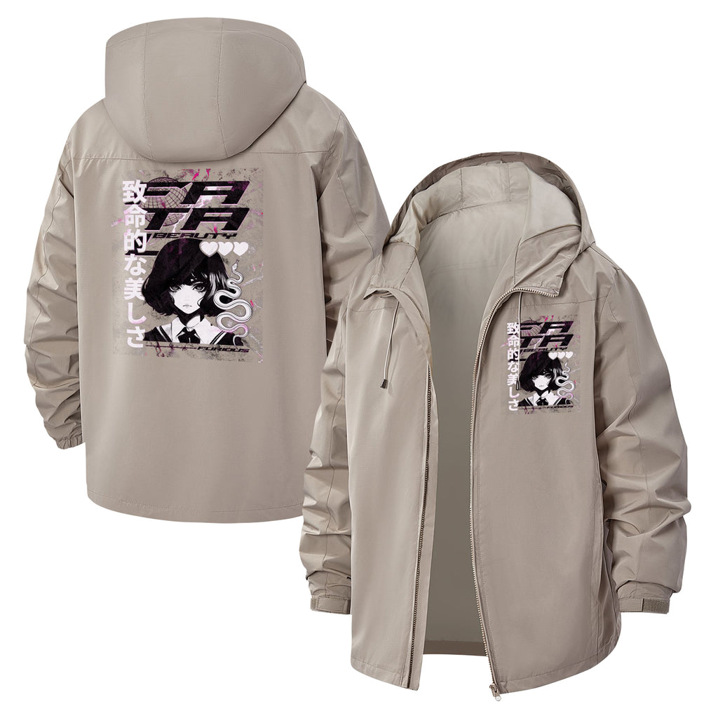 Manga Character Unisex Full-Zip Printed Waterproof Hooded Windbreaker