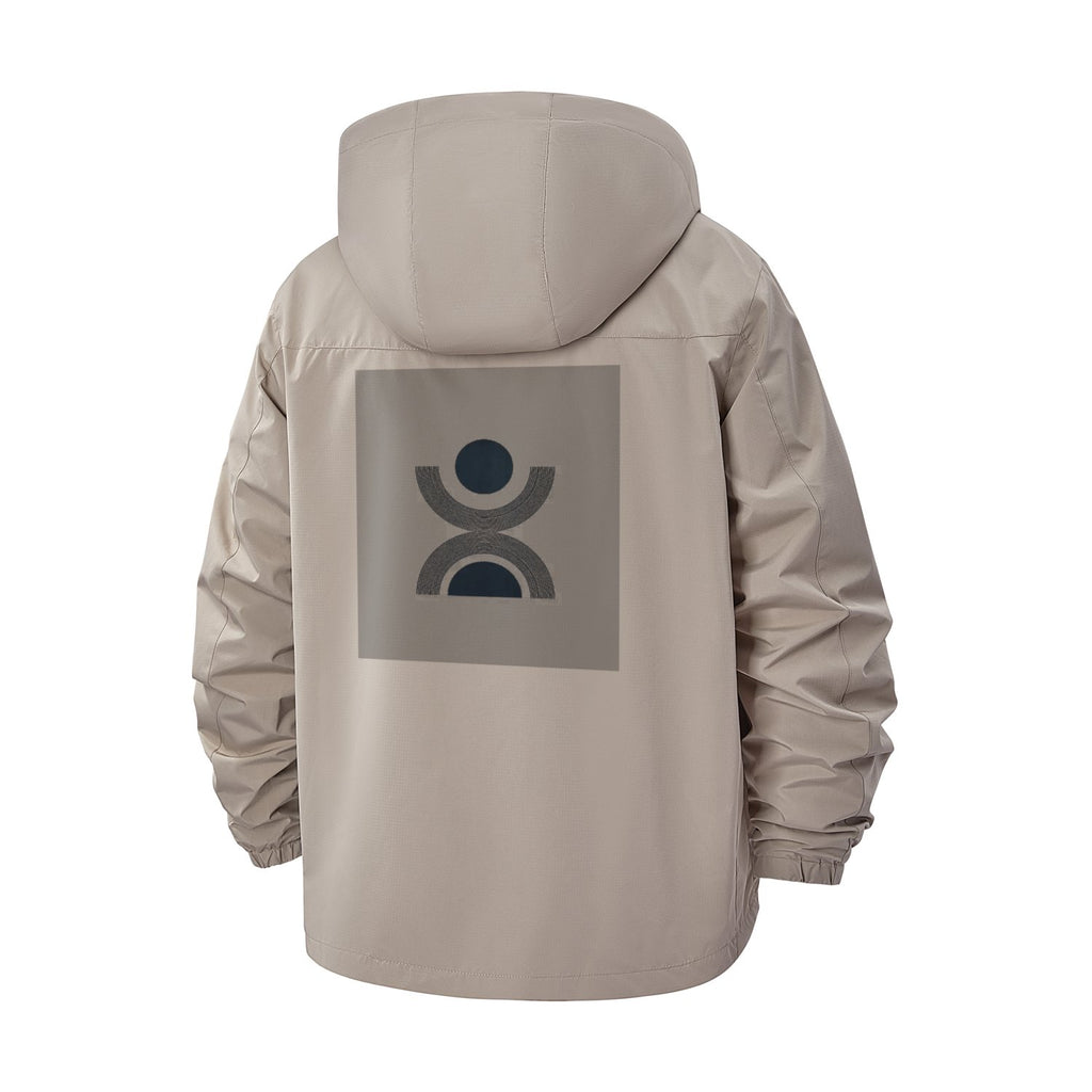 Minimal Geometric Unisex Full-Zip Printed Waterproof Hooded Windbreaker