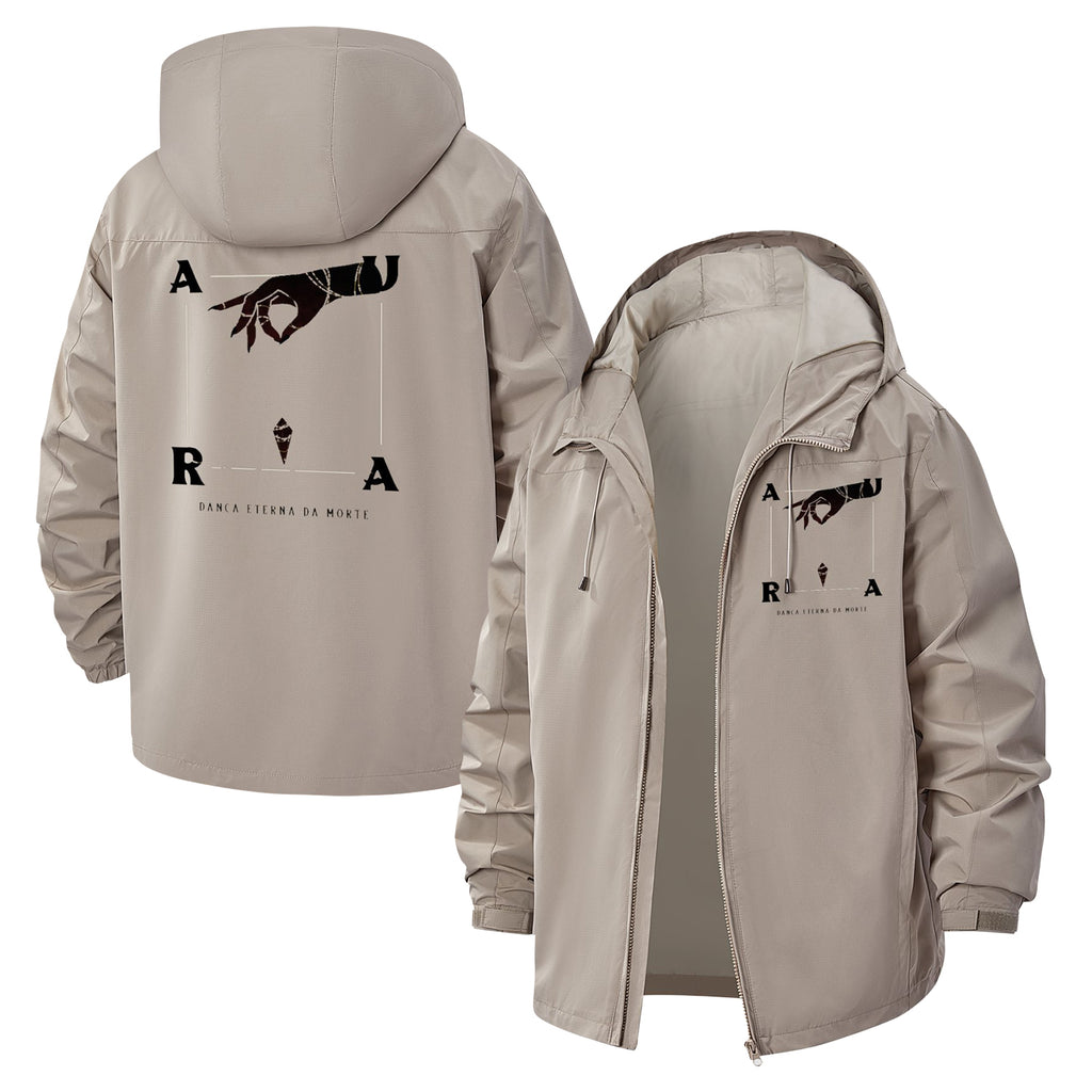 Minimal Typographic Unisex Full-Zip Printed Waterproof Hooded Windbreaker