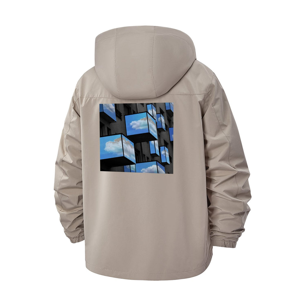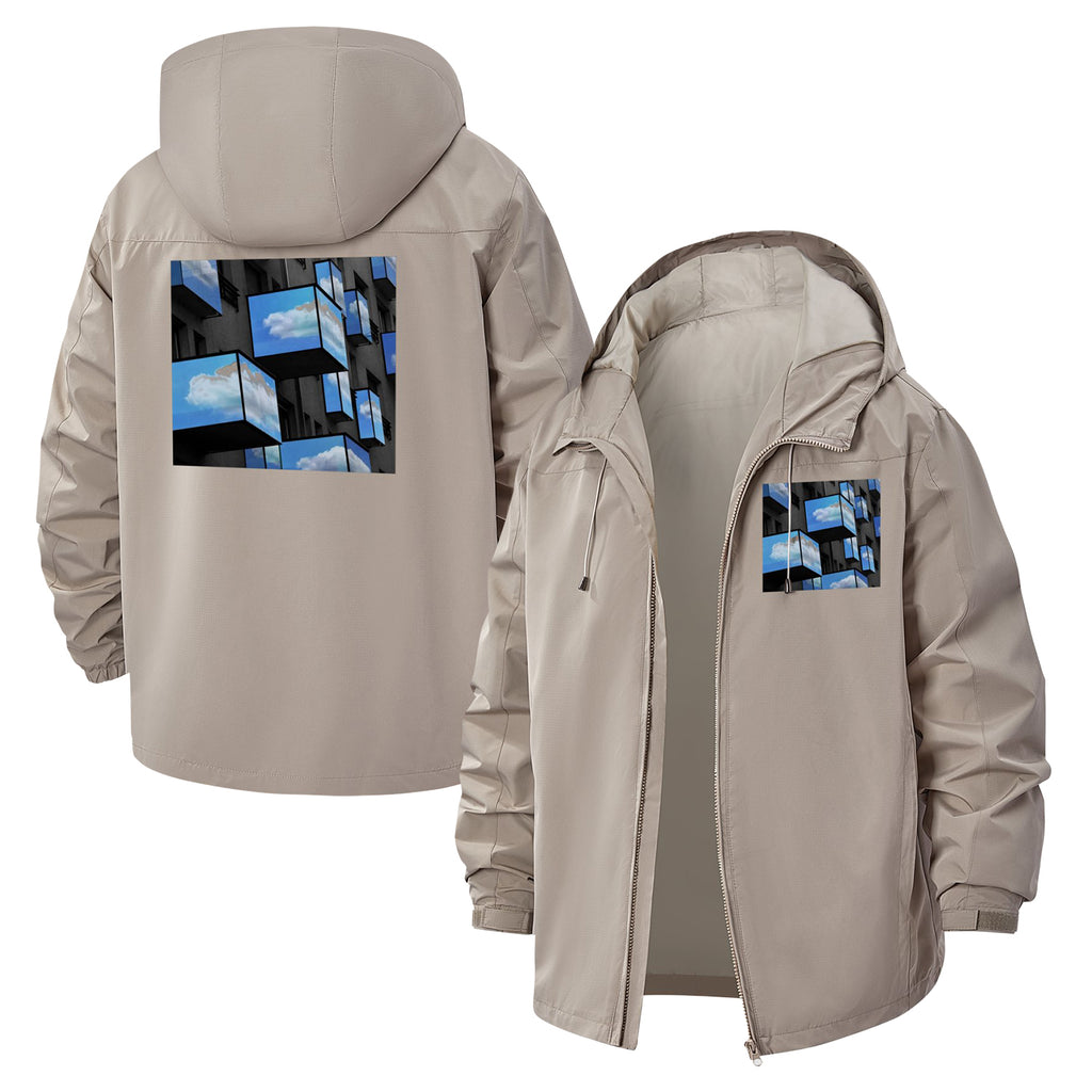 Modern Urban Architecture Unisex Full-Zip Printed Waterproof Hooded Windbreaker