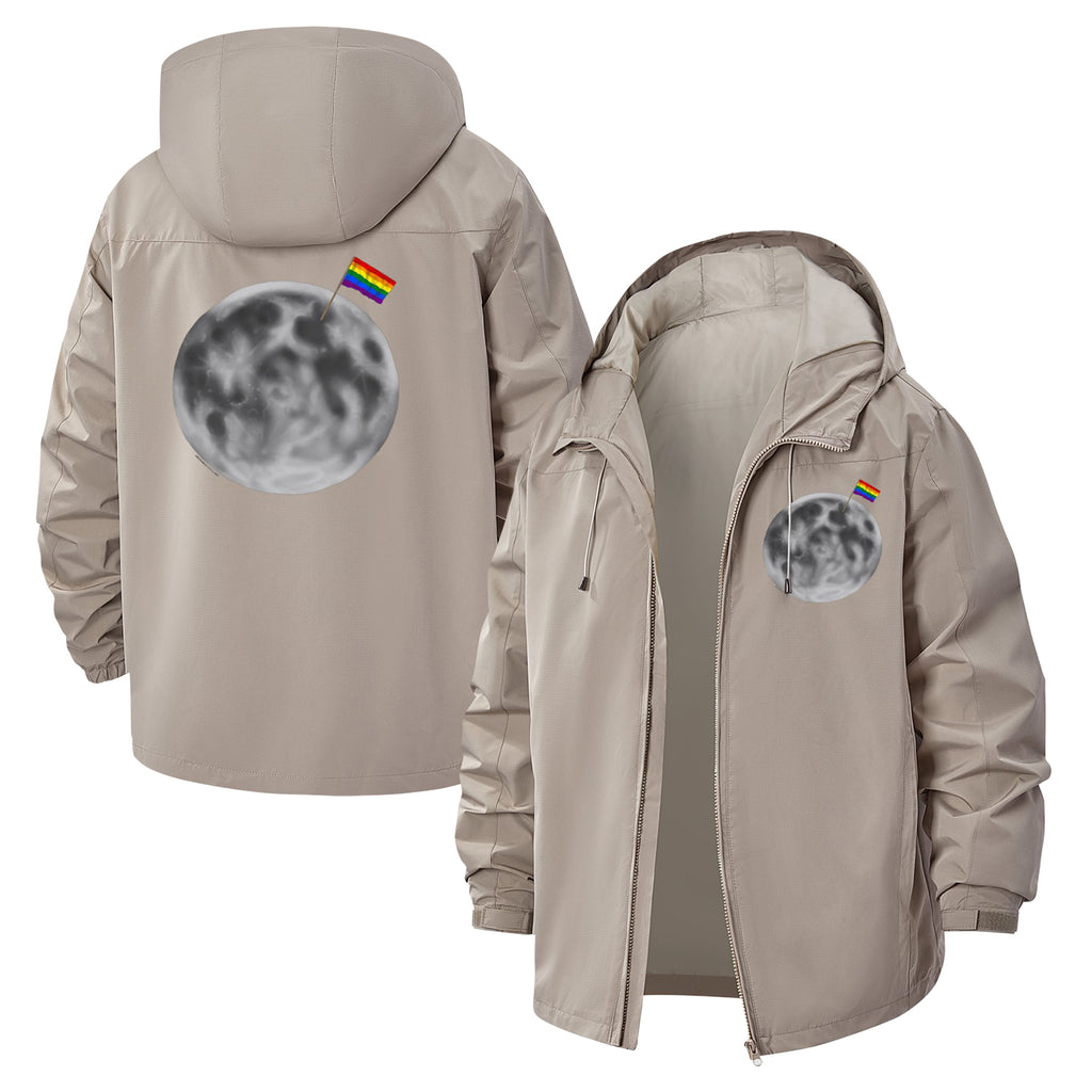 Moon and Pride Flag Unisex Full-Zip Printed Waterproof Hooded Windbreaker