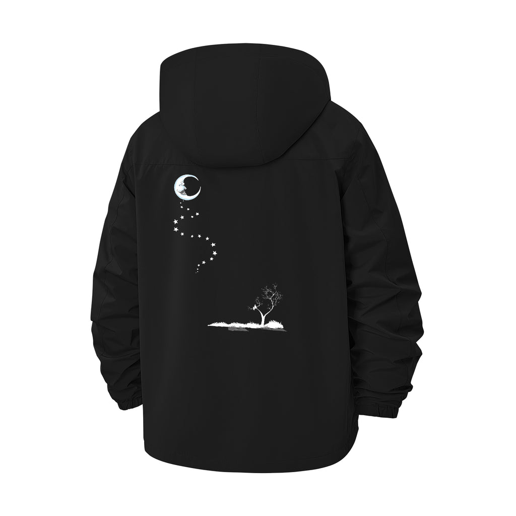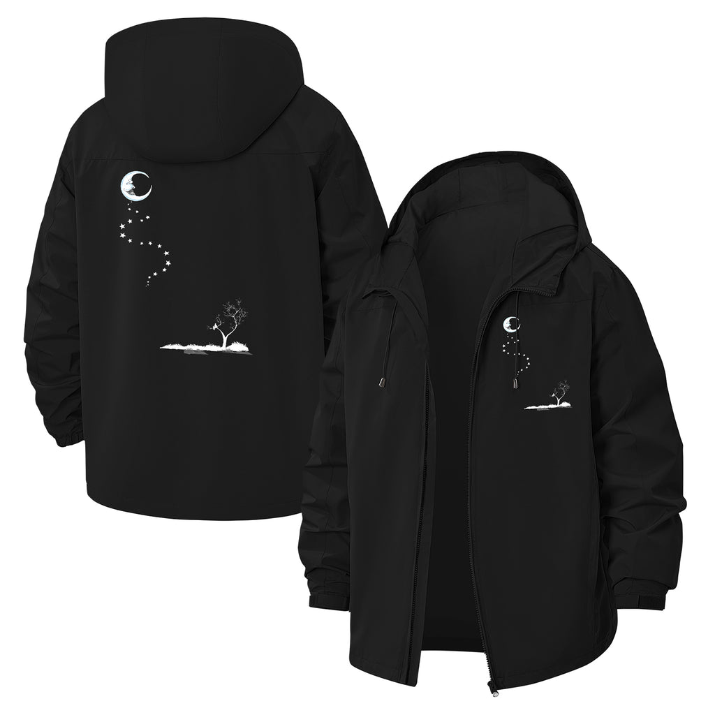 Moonlit Night Unisex Full-Zip Printed Waterproof Hooded Windbreaker