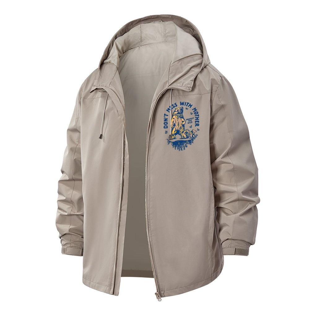 Mother Bear Wilderness Unisex Full-Zip Printed Waterproof Hooded Windbreaker