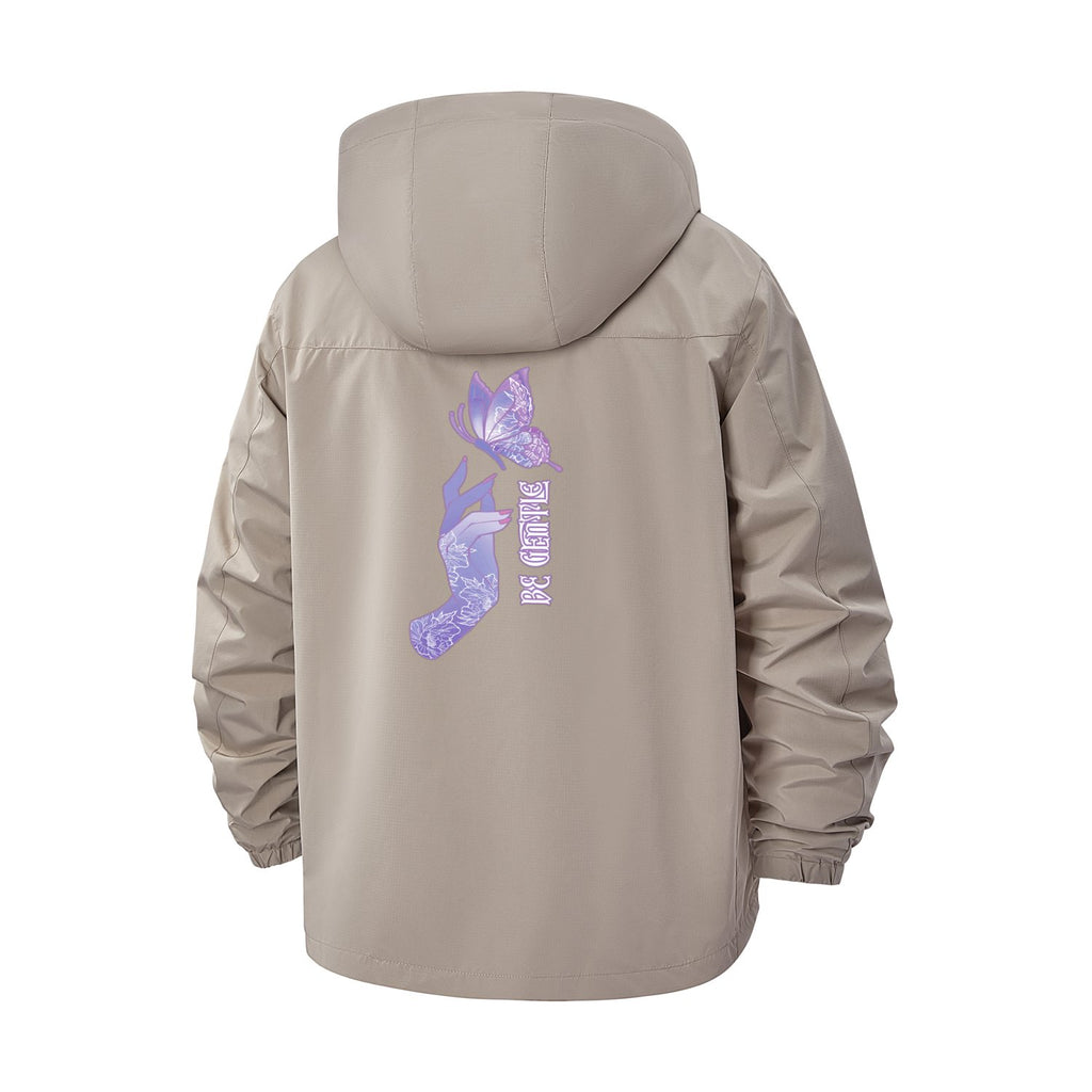 Motivational Butterfly Hand Unisex Full-Zip Printed Waterproof Hooded Windbreaker