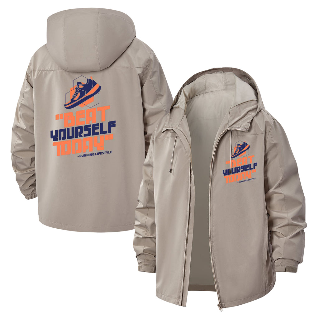 Motivational Running Quote Unisex Full-Zip Printed Waterproof Hooded Windbreaker