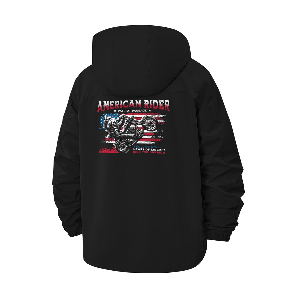 Motorcycle Patriot Unisex Full-Zip Printed Waterproof Hooded Windbreaker