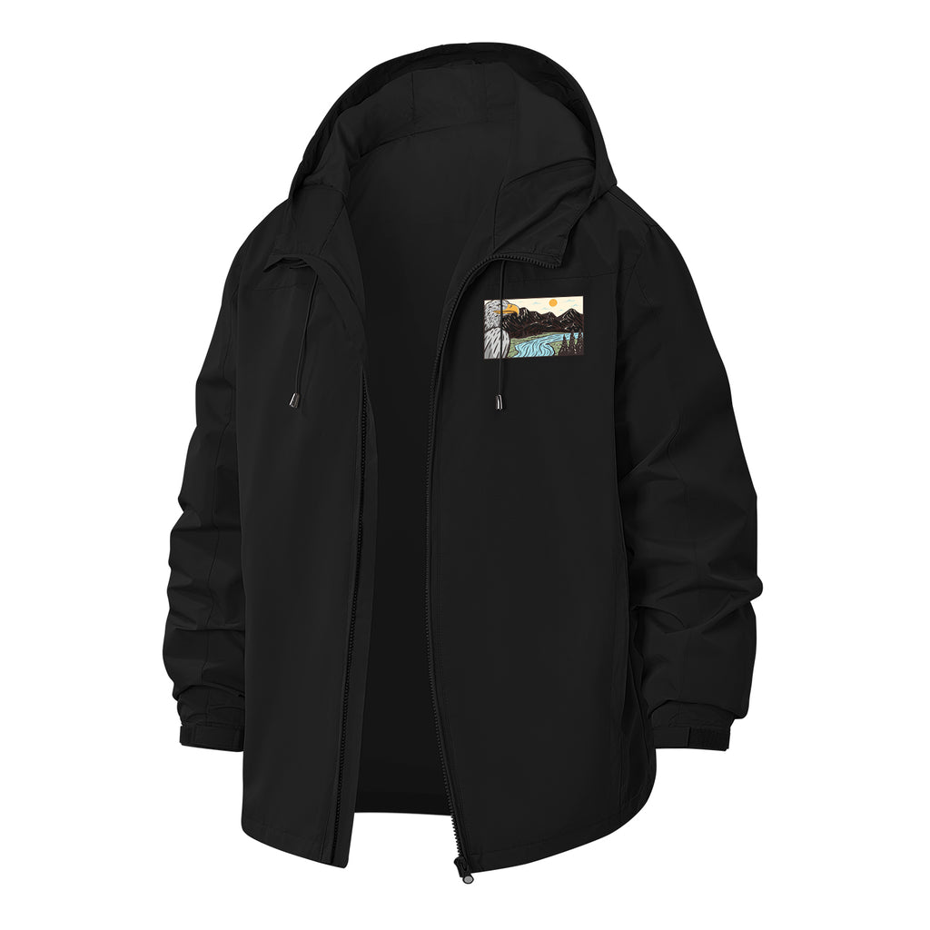 Mountain Landscape Unisex Full-Zip Printed Waterproof Hooded Windbreaker