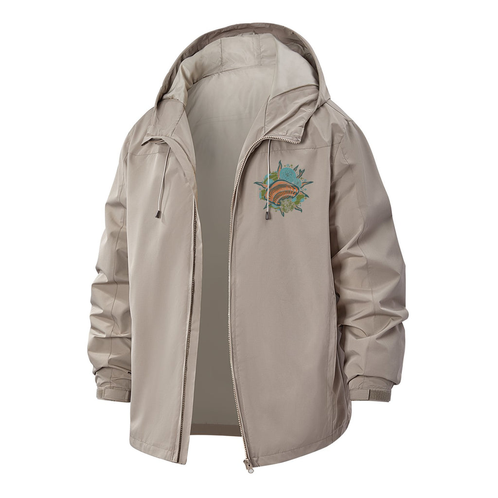 Mushroom and Nature Elements Unisex Full-Zip Printed Waterproof Hooded Windbreaker