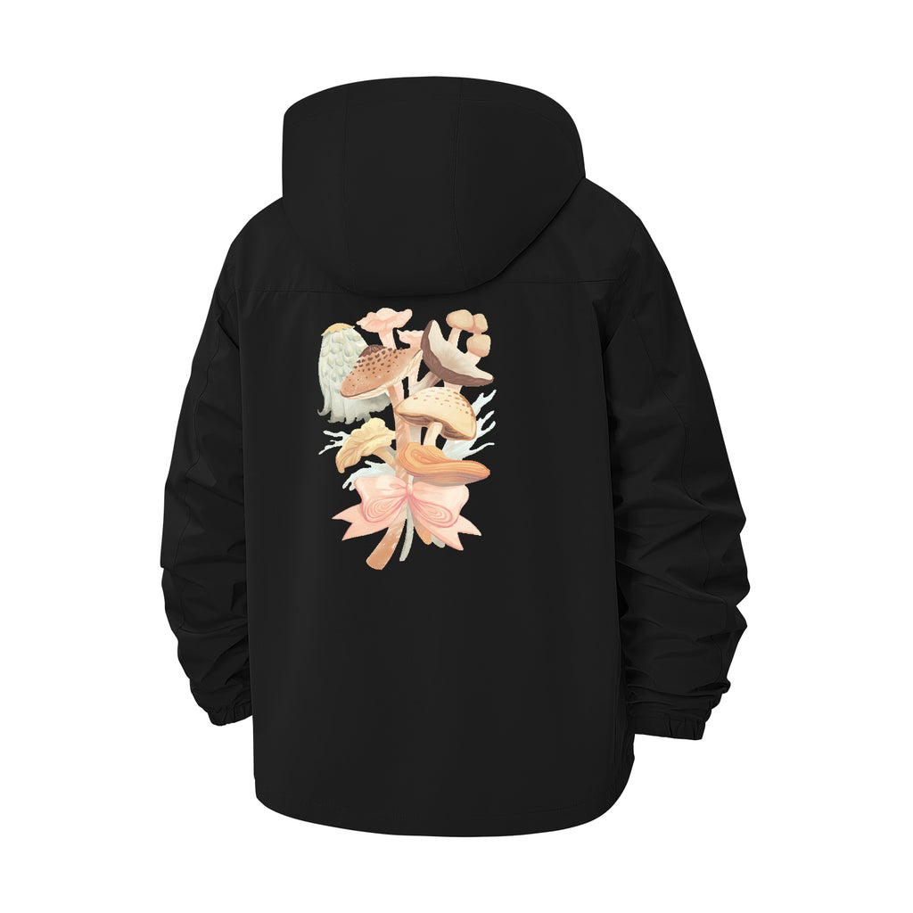 Mushroom Botanical Unisex Full-Zip Printed Waterproof Hooded Windbreaker