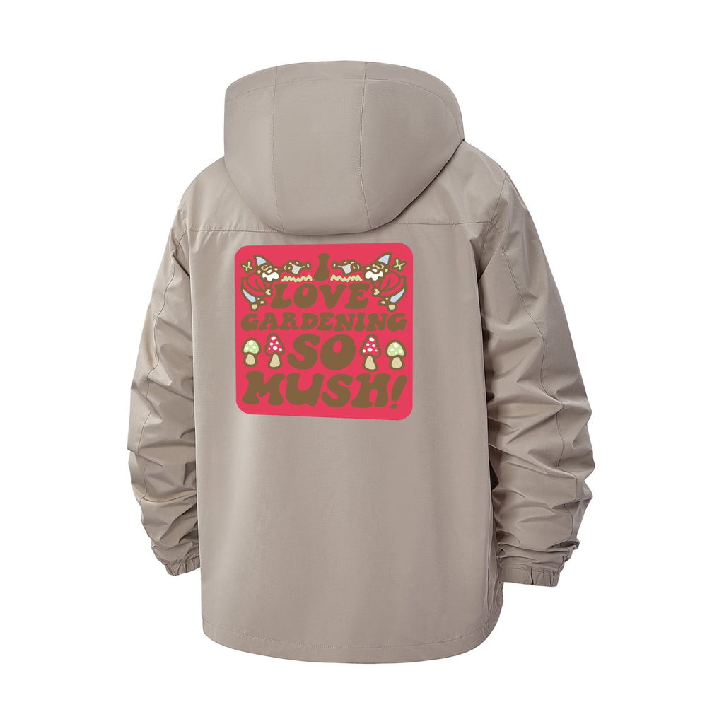 Mushroom Gardening Unisex Full-Zip Printed Waterproof Hooded Windbreaker