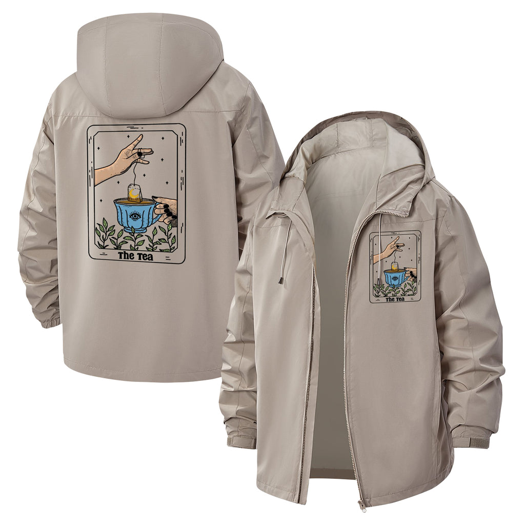 Mystic Tarot Tea Unisex Full-Zip Printed Waterproof Hooded Windbreaker