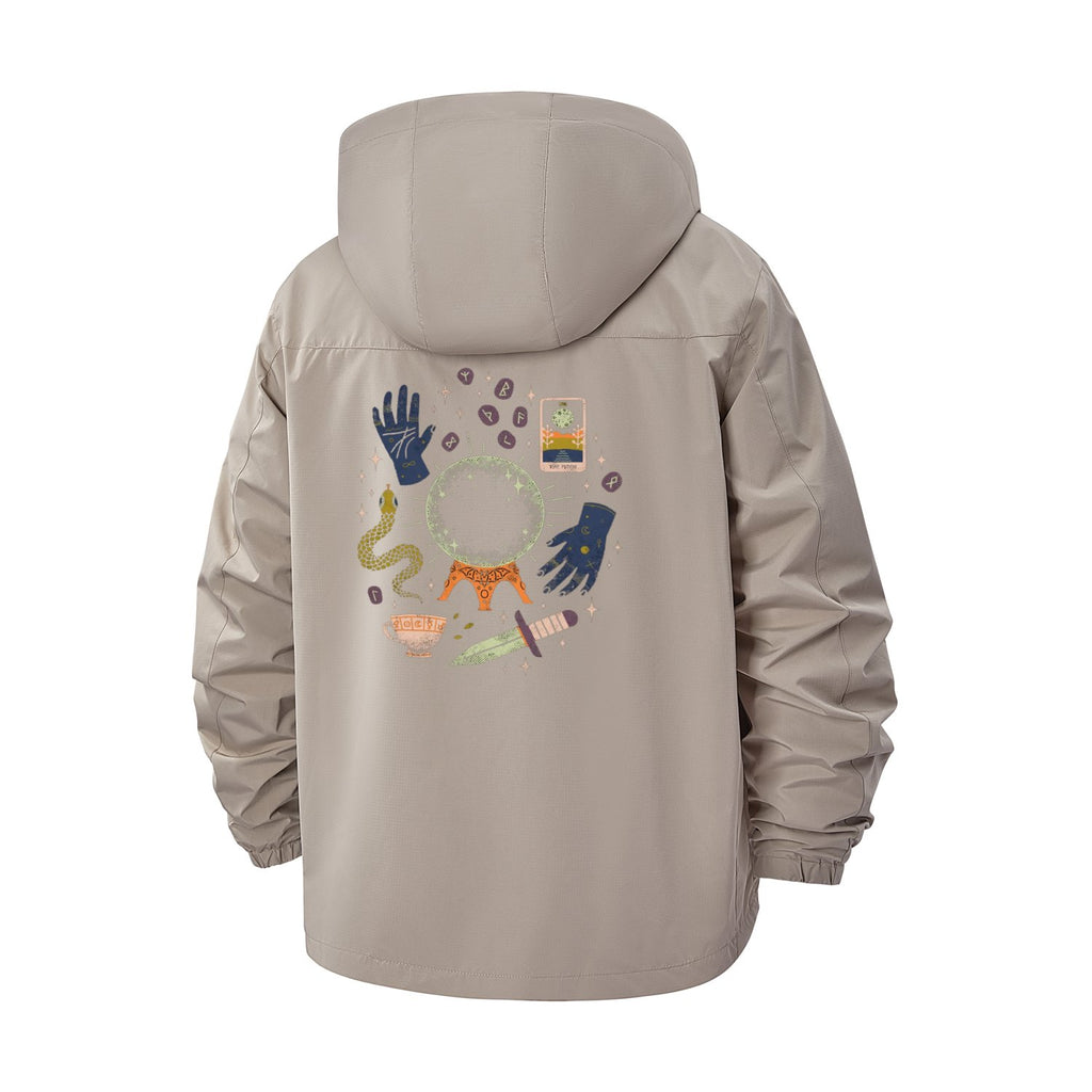 Mystical Fortune Teller Unisex Full-Zip Printed Waterproof Hooded Windbreaker